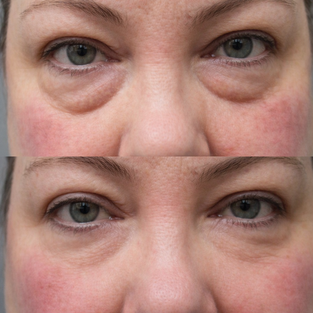 Upper and lower eyelids refined to reduce puffiness and restore a more rested look.