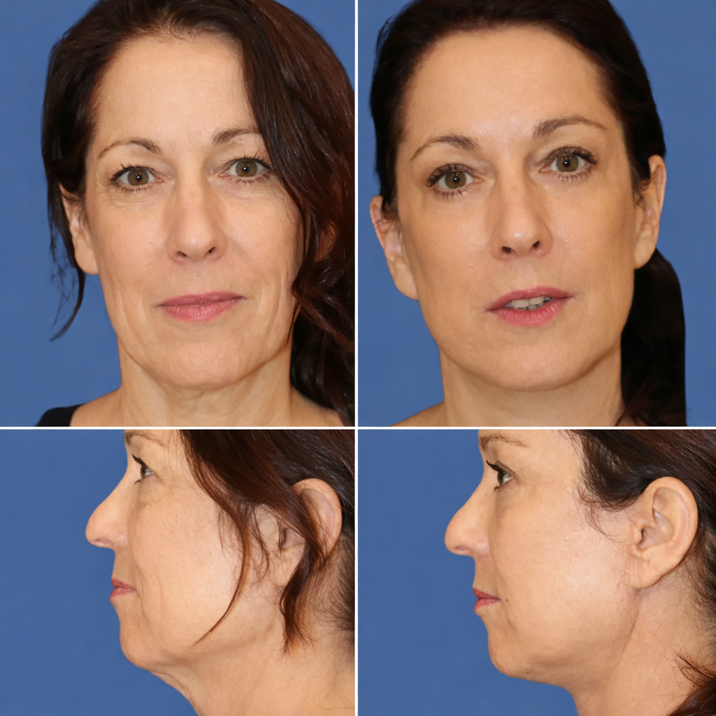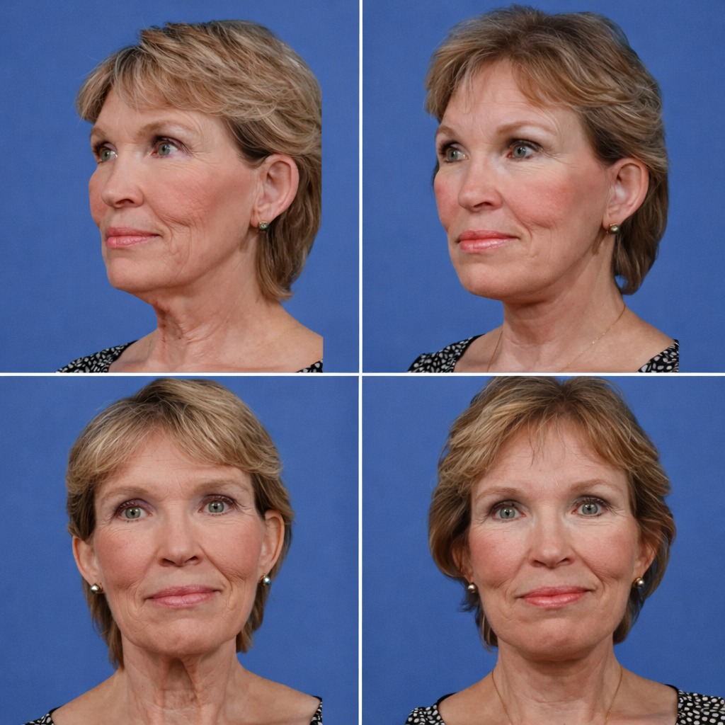 Sagging skin and deep folds softened for a smoother jawline and naturally rejuvenated appearance.